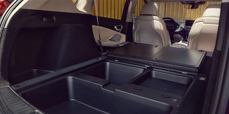 The 2024 RDX’s cabin is an innovative sanctuary of comfort, with high-quality materials and a thoughtful layout. The available full-grain premium Milano leather seats, panoramic moonroof, and ambient lighting create an atmosphere of sophistication. But the RDX's interior isn’t just focused on luxury; it's also about functionality. With 79.8 cu. ft. of max cargo room and underfloor storage, there’s ample space to pack up for an adventure. The intuitive infotainment system on a 10.2-inch display pairs with a lengthy list of connectivity features, so you’re always in control and well-connected.